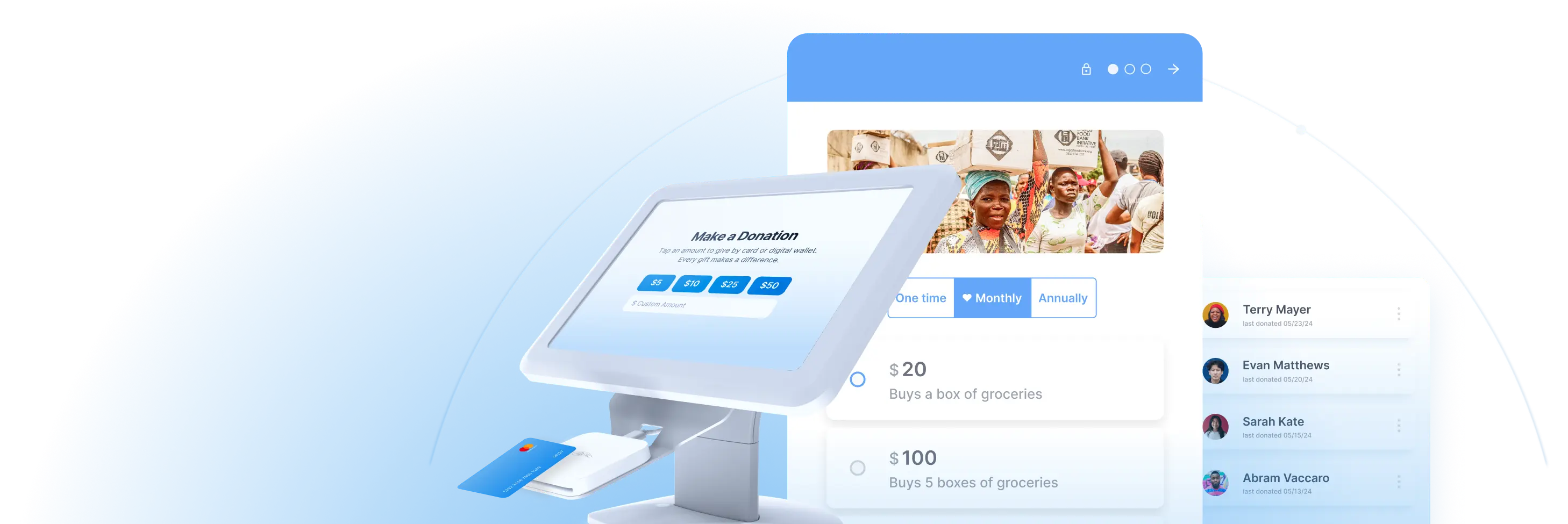 Ideal para eventos, iglesias, museos y más. Donorbox Live™ Kiosk fomenta las donaciones espontáneas al ofrecer una experiencia de donación autónoma y fácil de usar. Optimiza tu proceso de donaciones, reduce la necesidad de personal y mejora la gestión de donantes.