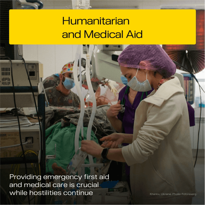 UNITED24 raises funds to be used in three directions: Medical Aid, Defense, and Rebuilding of the infrastructure damaged during the war.