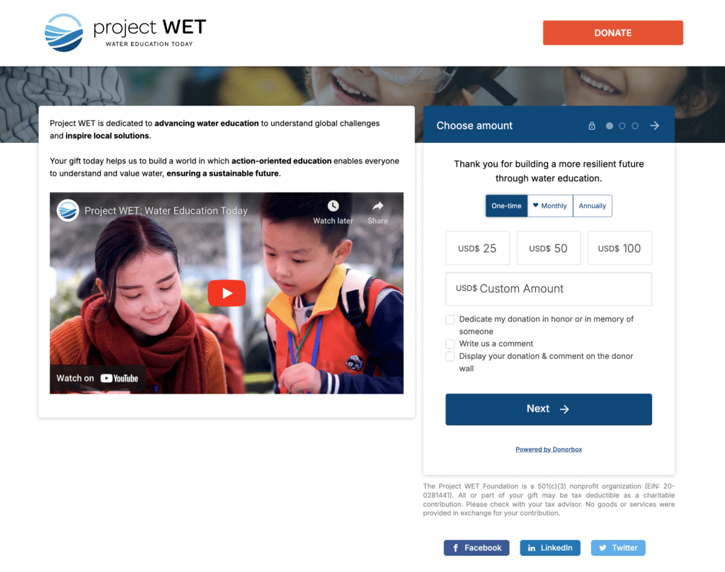 Take a look at how Project WET uses Donorbox to capture more recurring donations online.