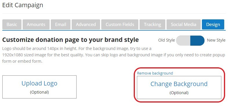 One welcome feature is that you can now add a custom background image to your donation page. This could be anything from a group picture of the kids you are helping through your campaign or even an abstract design to uplift the appearance of your logo.