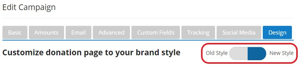 Simply log into your Org account and click Edit, next to your campaign name. Go to the Design tab and click the Style toggle switch, as shown here: