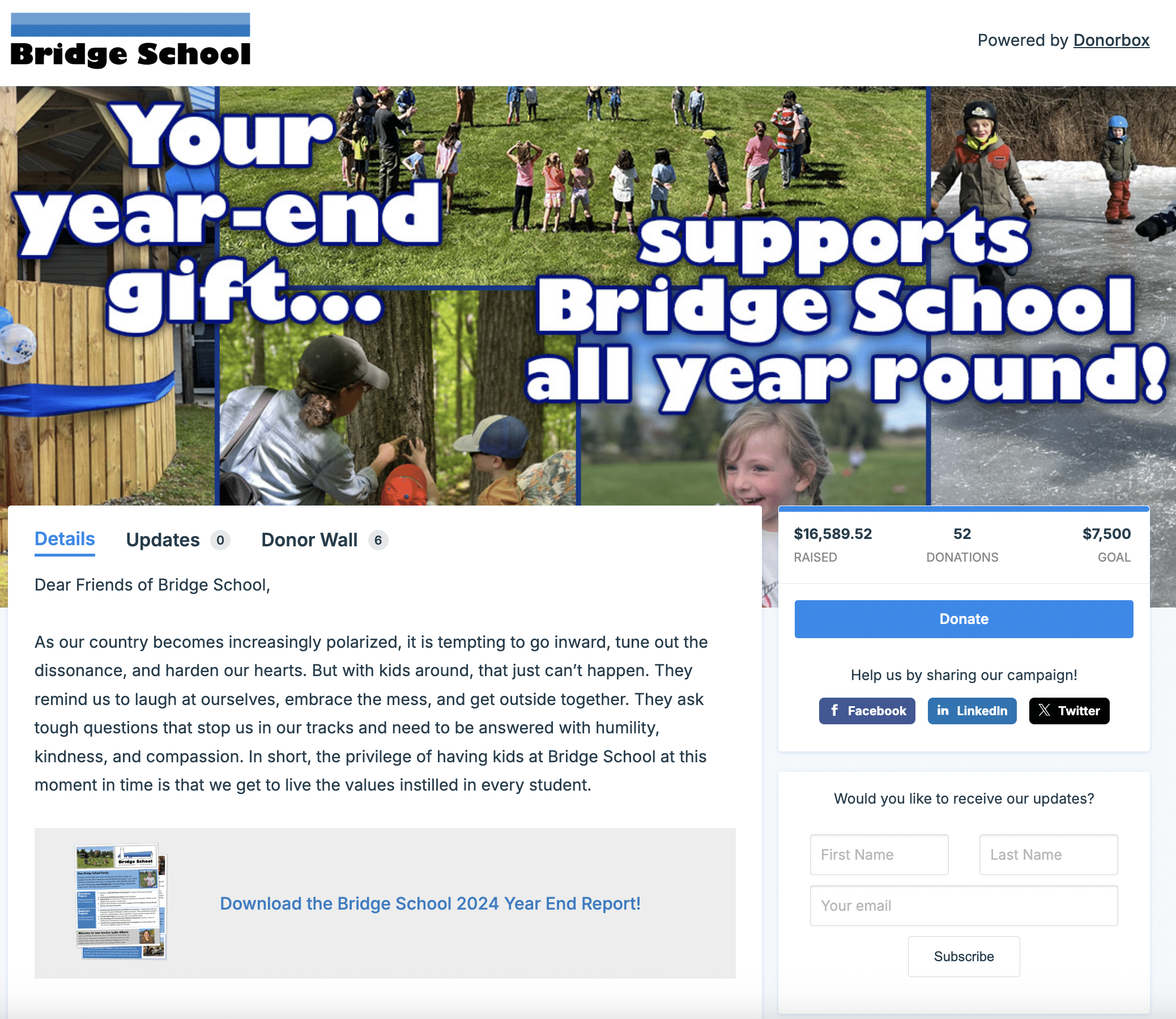 Look at howBridge School highlighted their fundraising goal and surpassed it with only 52 donations!