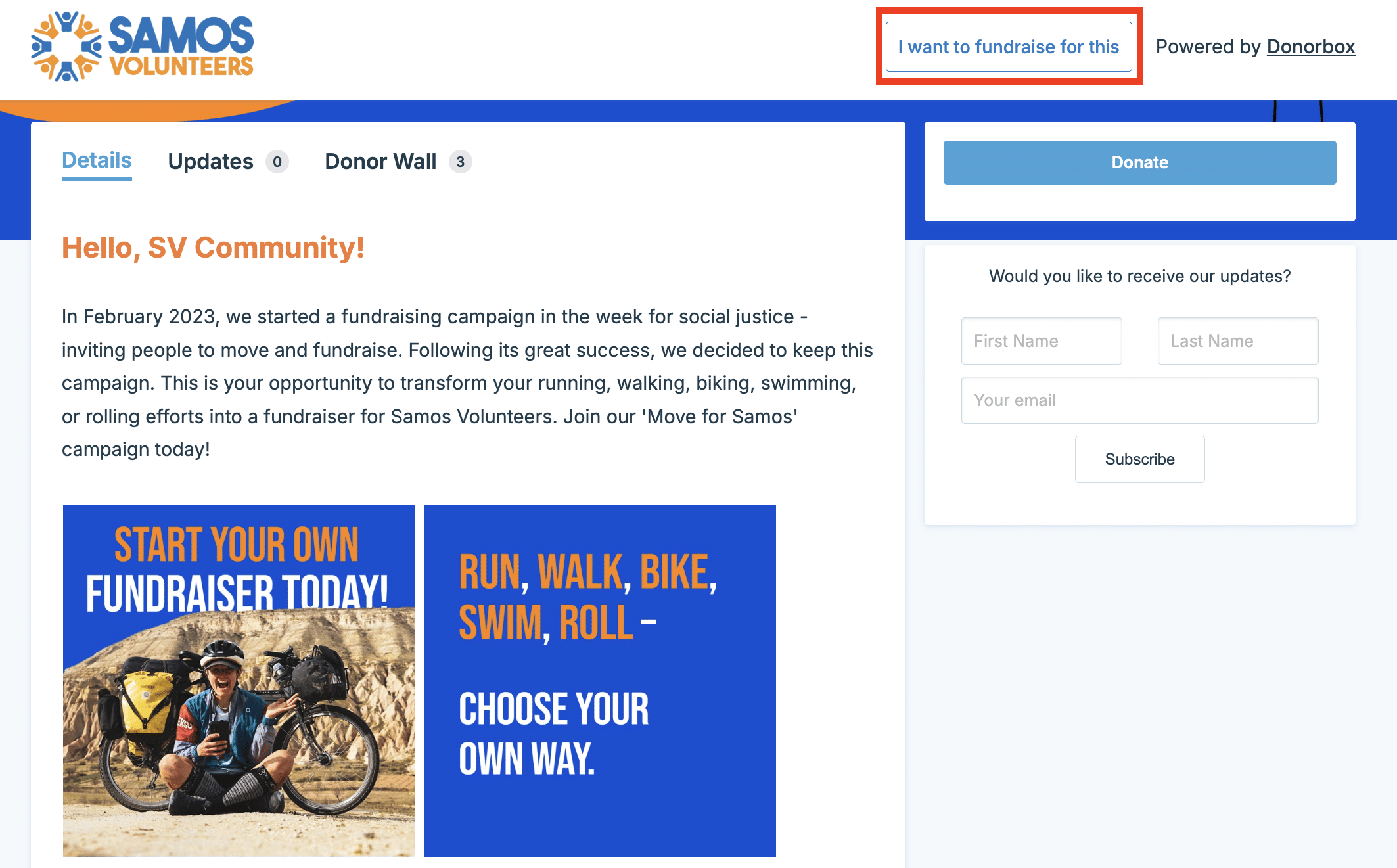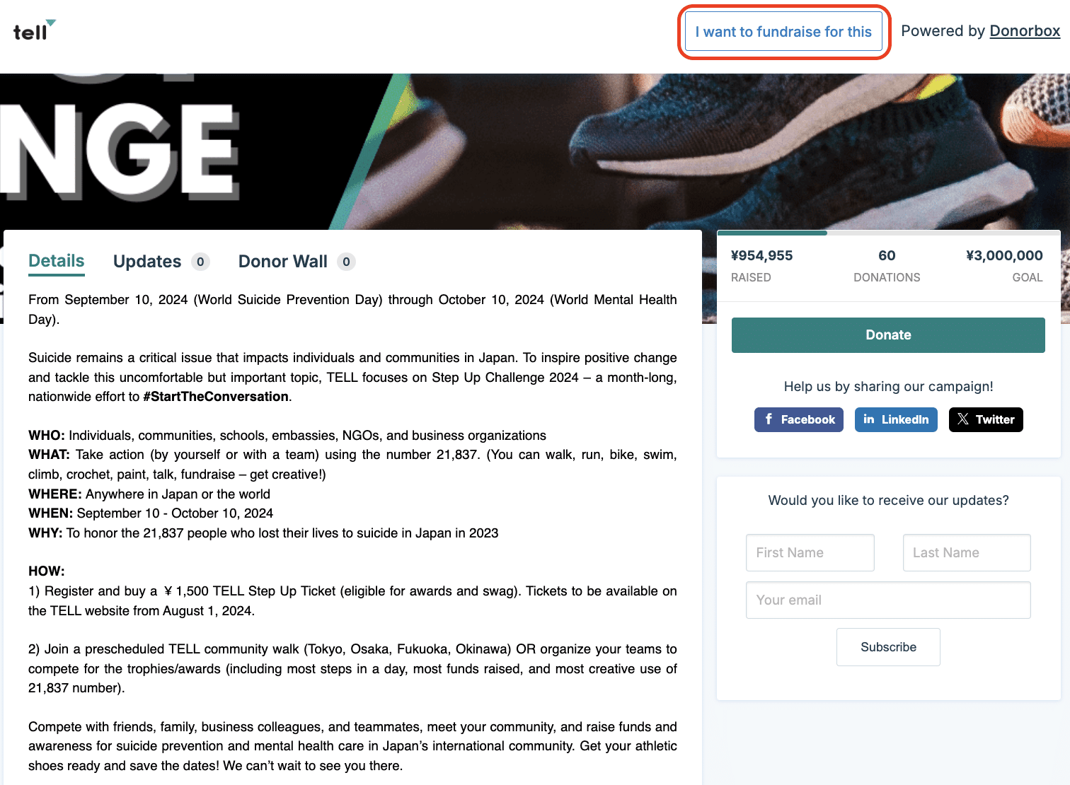 TELL made it easy for anyone to fundraise on their behalf with a button right on their peer-to-peer page. They let their participants choose which activity they wanted to do, meaning there is something for everyone!