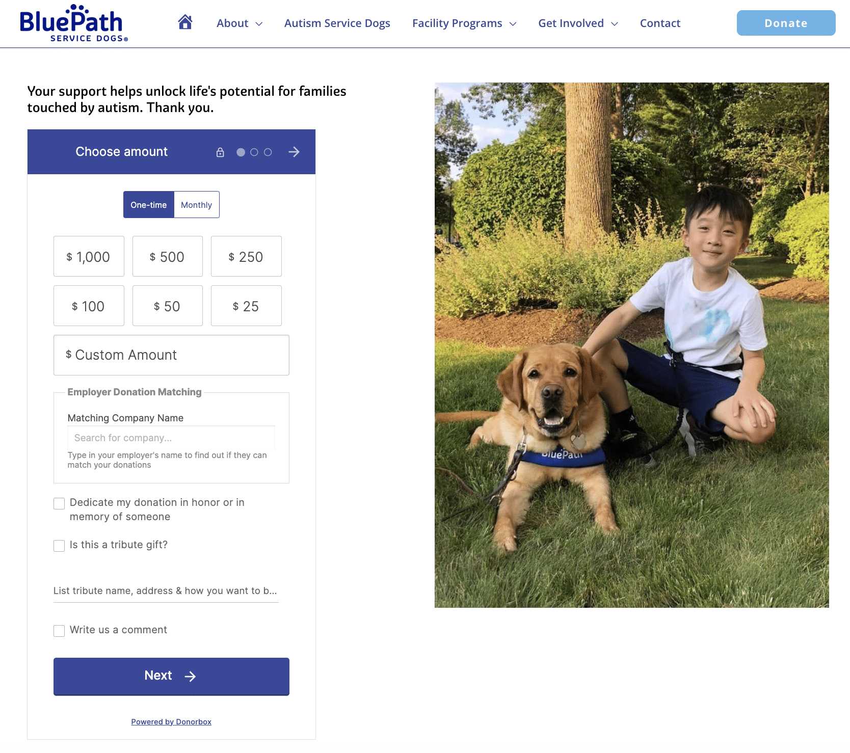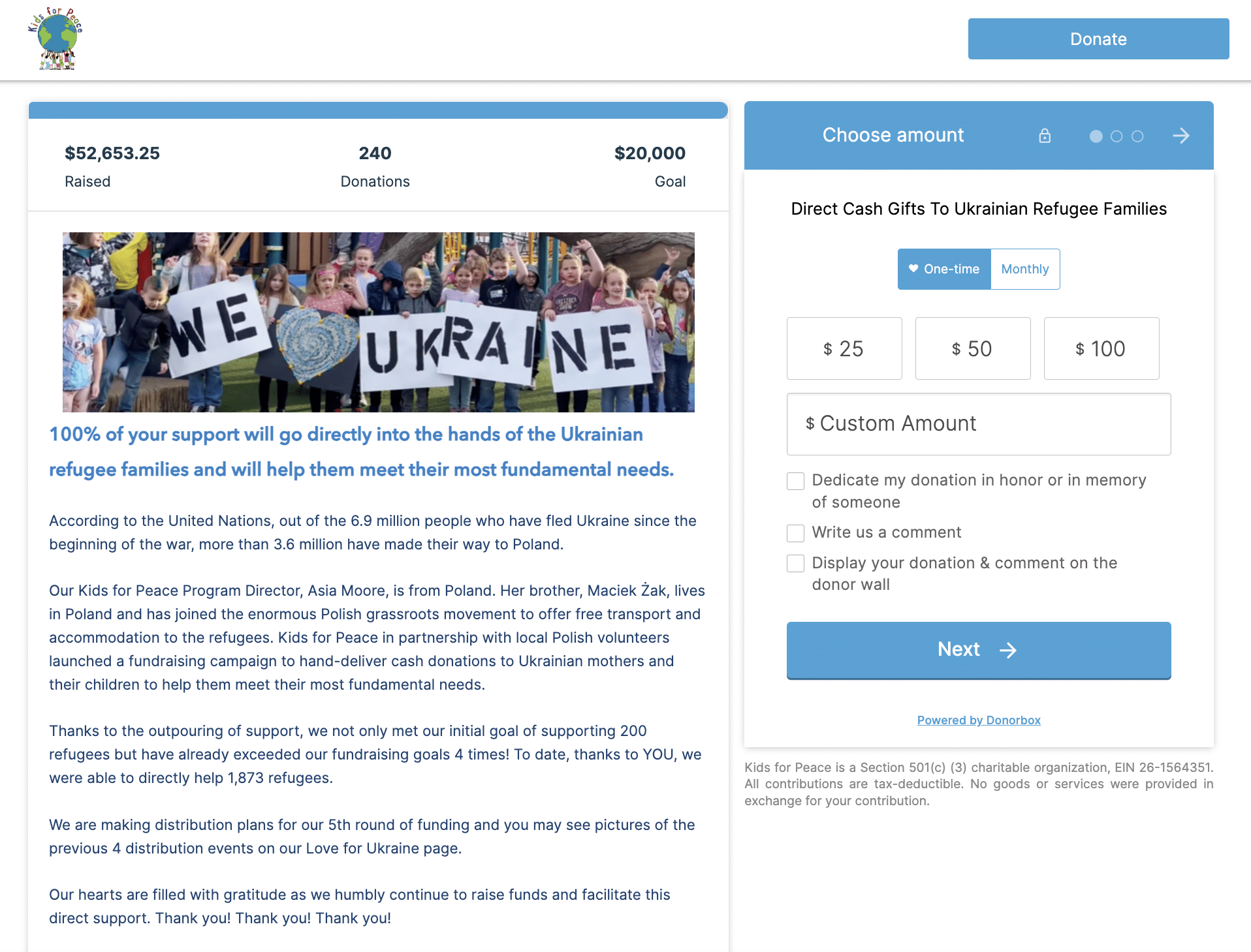 With your customized donation form, you can easily build a donation page like this one hosted on Donorbox.